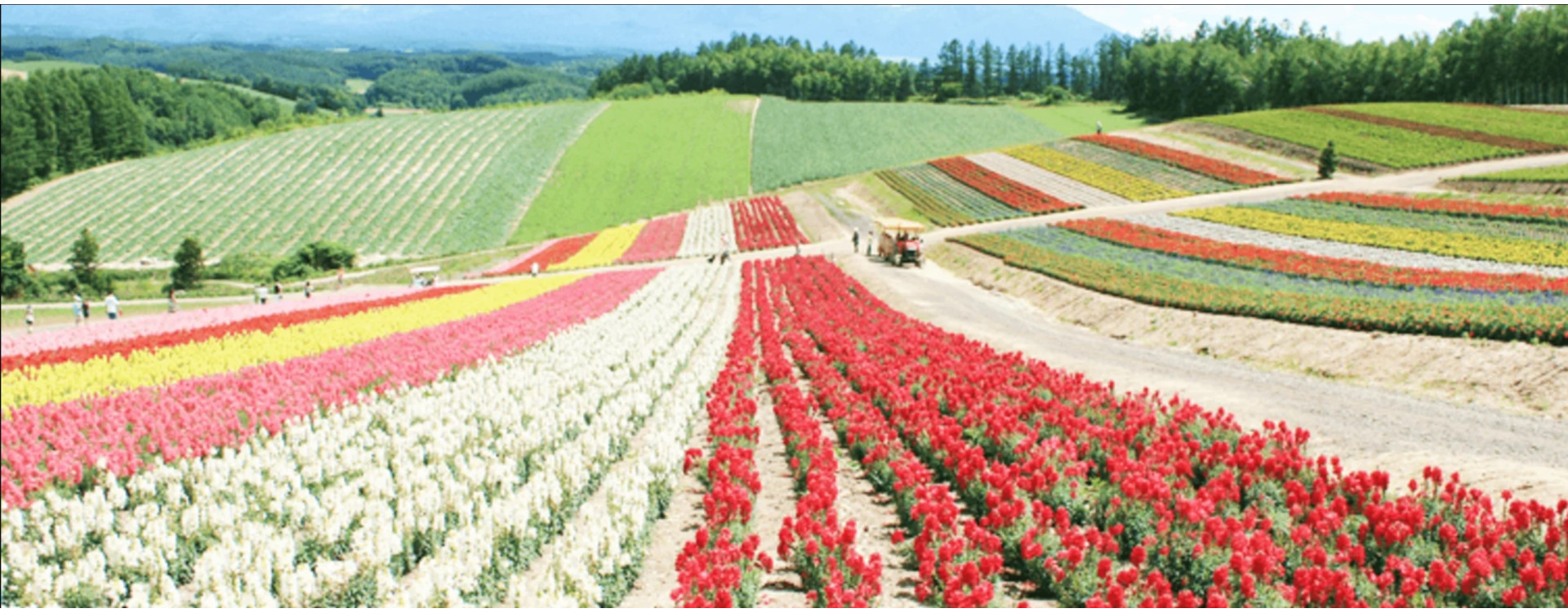 四季彩の丘は、7ヘクタールの花畑が春から冬にかけて30種類の花々で彩られることから、観光地としても大変人気があります。 素晴らしい重複メッセージ。 5月になると、チューリップ、ルピナス、金星草、ポピーなど春の花々が咲き乱れ、世界中から訪れる人々を「うっとり」させます。